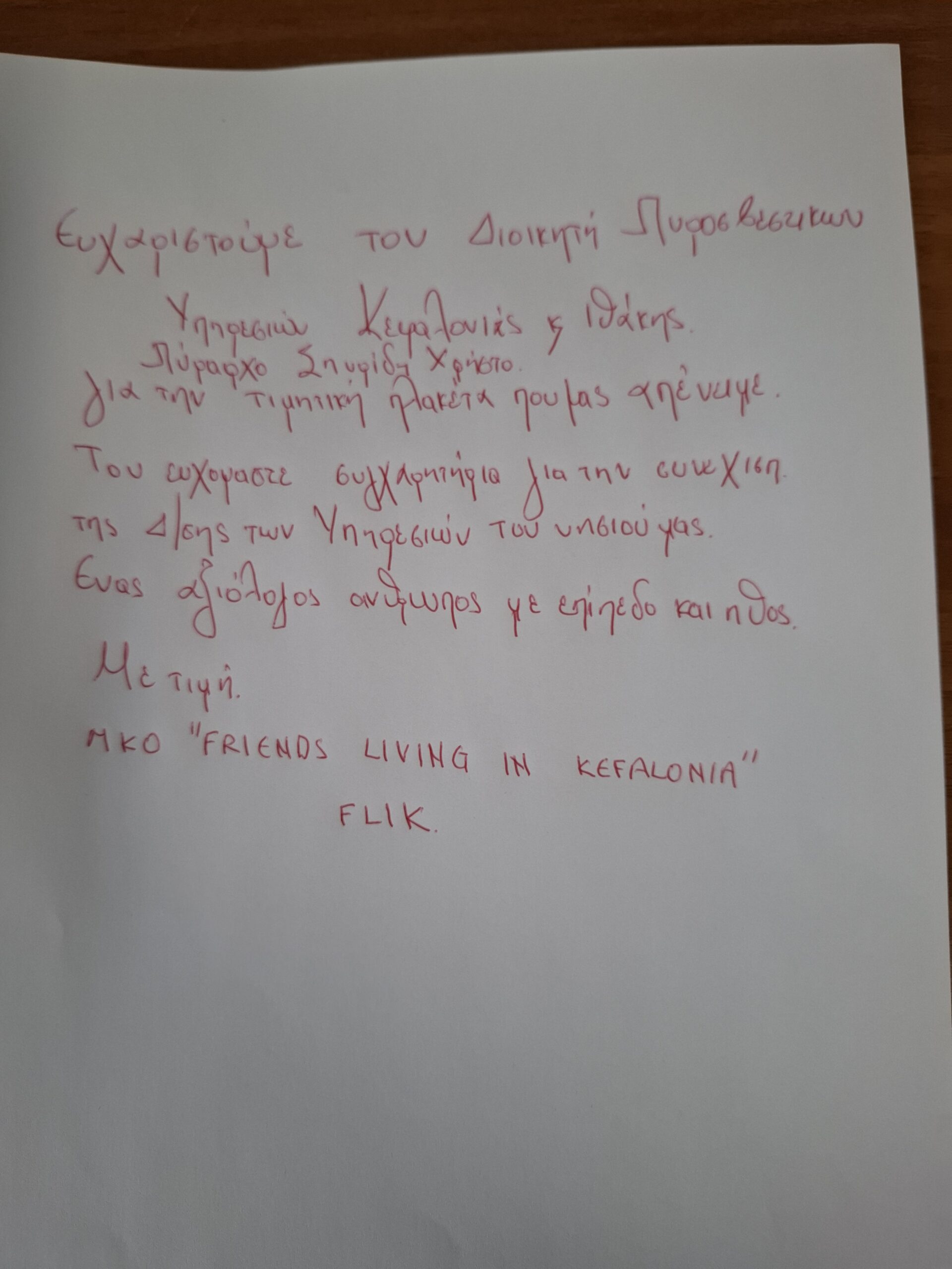 Ευχαριστούμε για την τιμητική πλακέτα που μας έδωσε