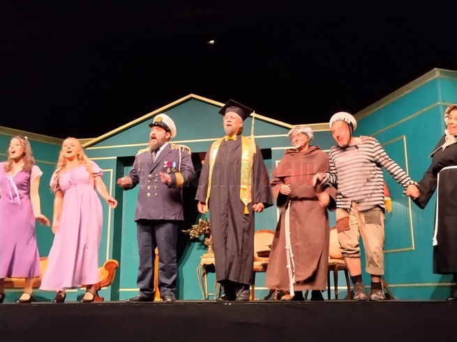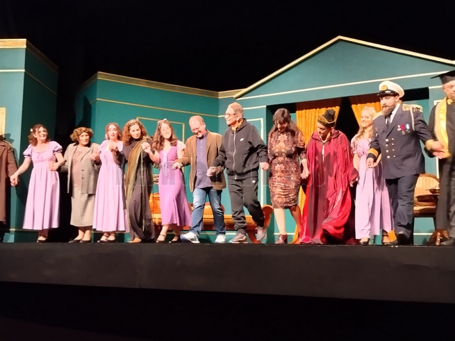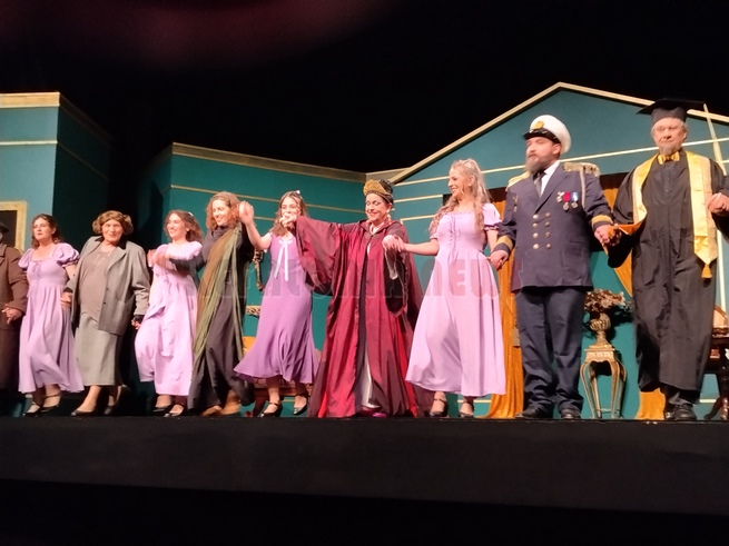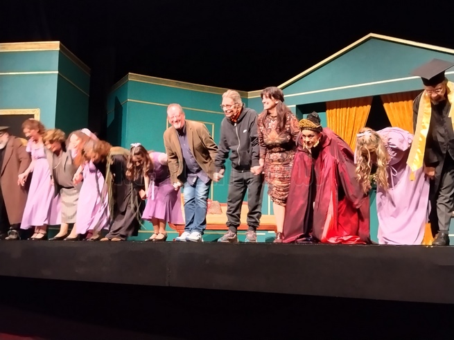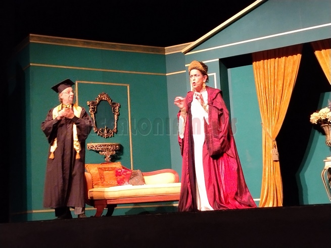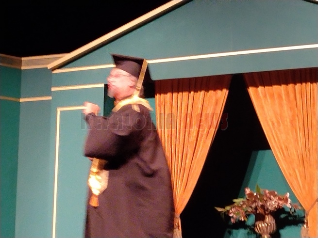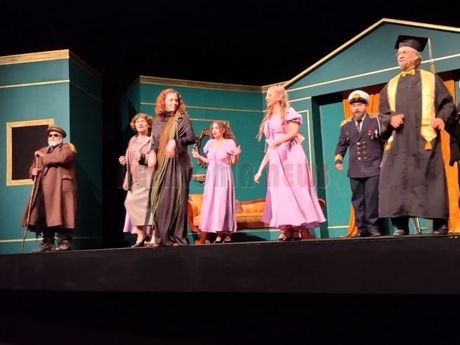 Άφησα να παρακολουθήσω την τελευταία παράσταση, αφού είναι και η καλύτερη, πάντα ισχύει αυτό. Έτσι και ήταν. Μια εκπληκτική παράσταση αν και ο λόγος ήταν έμμετρος και δεν είμαστε συνηθισμένοι, η απόδοση όλων ήταν εξαιρετική. Ιδιαίτερα στο τέλος ο κόσμος χειροκροτούσε συνέχει και δεν άφησε τους ηθοποιούς να φύγουν από τη σκηνή. Θα ήθελα να ξεχωρίσω την Αγγελική ΄Γιαννακοπούλου η οποία ήταν η έκπληξη αλλά ιδιαίτερα τον Τάσο Μπεκατώρο που ο ρόλος ήταν …ιδιαίτερος. Τι όμορφα κορίτσια που είχε ο χορός! Συγχαρητήρια σ’ όλα τα παιδιά, ιδιαίτερα στον Πάνο Βαρδάκο και Κώστα Χαριτάτου.