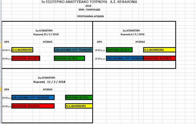 2) Το τουρνουά Μίνι – Παμπαίδων (ηλικίες 2003-05) χωρίζεται σε 4 ομάδες και ξεκινά τους αγώνες του την Κυριακή 25/2/2018 με το ακόλουθο πρόγραμμα.