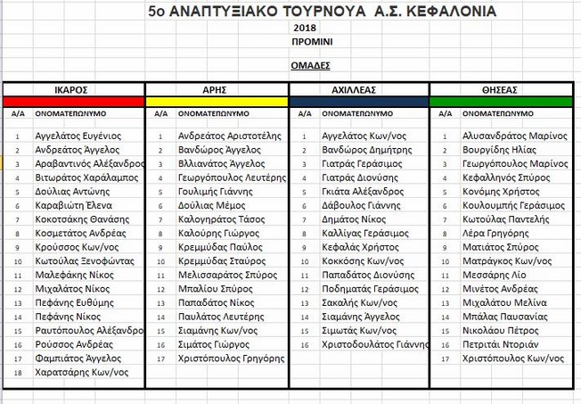 1) Το Τουρνουά προμίνι (ηλικίες 2006-09) χωρίζεται σε 4 ομάδες και ξεκινά τους αγώνες του την Πέμπτη 22/2/2018 με το ακόλουθο πρόγραμμα.