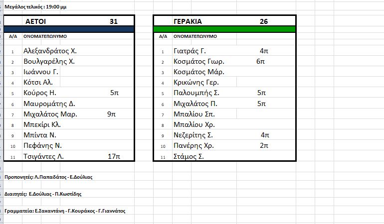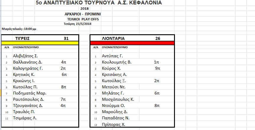 Παρακάτω τα αποτελέσματα τω αγώνων της τελικής φάσης