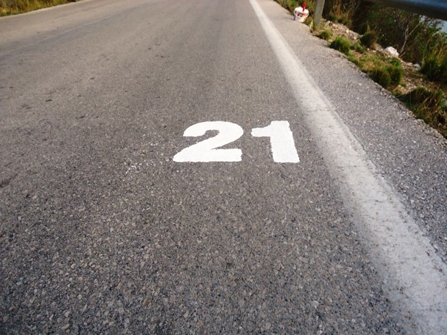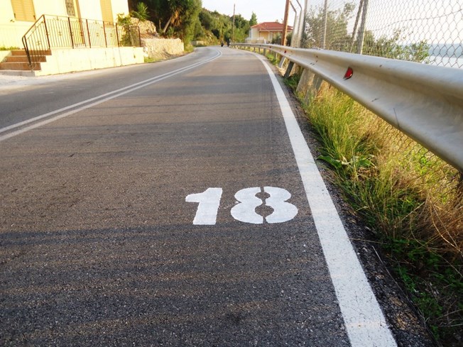 Η σήμανση είναι ανά 1 κμ ευκρινής στα δεξιά της δρομικής πορείας. Οι σταθμοί είναι ανά 3κμ ξεκινώντας από το έκτο, ενώ μπορεί να απέχουν κάποια μέτρα από την αντίστοιχη χιλιομετρική ένδειξη για λόγους καλύτερης διαχείρισης του χώρου τοποθέτησής τους.
