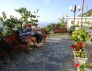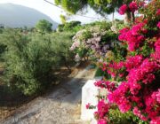 «Πάρτε μια ανάσα, ανάσα βαθιά, να αισθανθείτε το αέρινο χάδι της μοσχοβολιάς. Βασιλικός, μπουγαρίνι, γαρδένια, γαζία. Βάλσαμο, στο σώμα, βάλσαμο στο πνεύμα!» ήταν περίπου τα λόγια της κας Σοφρώνης Ζαφειράτου, ξεναγώντας μας στην εντυπωσιακή ανθοστόλιστη περίβολο του σπιτιού της, σχεδόν δίπλα στην εκκλησία της αφετηρίας, στον Αγκώνα.