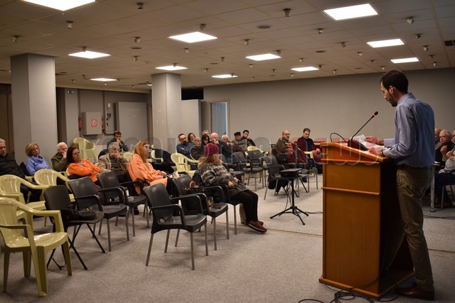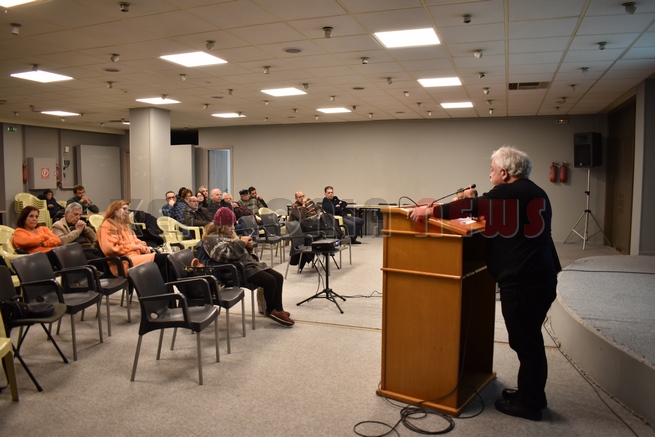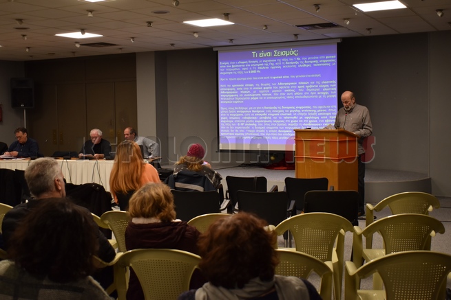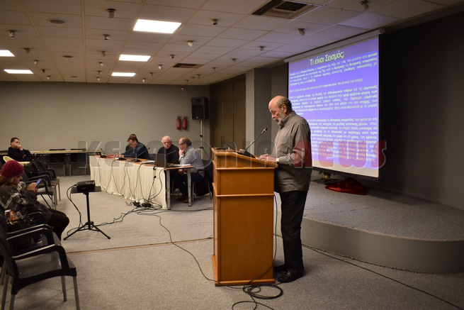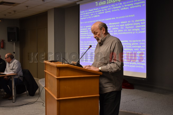 «Ο σεισμός ως φυσικό φαινόμενο και οι κοινωνικές του προεκτάσεις», ομιλητής Σταύρος Τάσσος, Dr ερευνητής σεισμολόγος, Πρόεδρος της ΕΕΔΥΕ και πρώην βουλευτής του ΚΚΕ