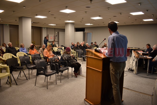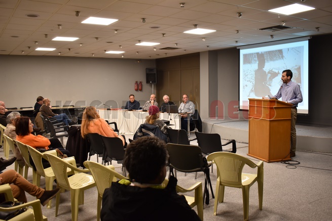 «Πολιτική προστασία για ποιόν; Ο ρόλος του αστικού κράτους», ομιλητής Αντώνης Ραλλάτος, μέλος της Κ.Ε.Ο.Ε. και Υπεύθυνος του Τμήματος Περιβάλλοντος της ΚΕ του ΚΚΕ