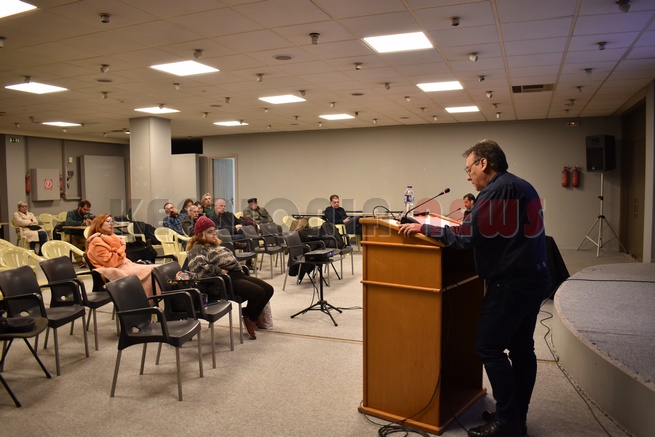 Εκδήλωση της Τ.Ε. Κεφαλονιάς και Ιθάκης του ΚΚΕ στο Δημοτικό Θέατρο Αργοστολίου στην κάτω αίθουσα για τα «70 χρόνια από τους καταστροφικούς σεισμούς της Κεφαλονιάς του 1953 – Η αντισεισμική προστασία τότε και σήμερα. Οι θέσεις του ΚΚΕ». Παρουσίασε ο Γραμματέας της Τ.Ε. Διον. Αλιβιζάτος.