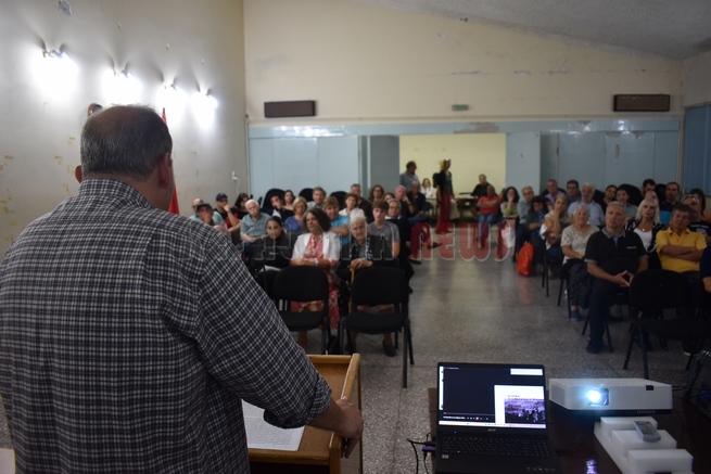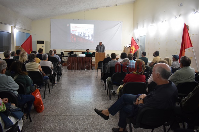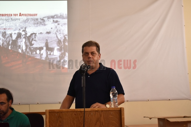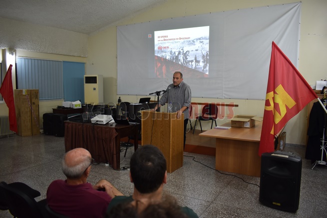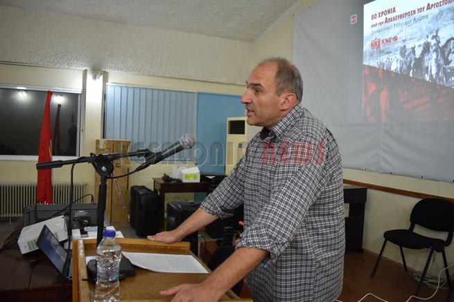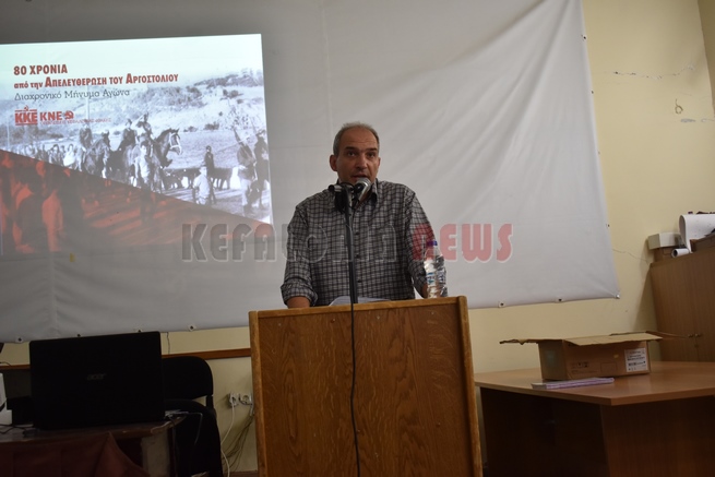 Εκδήλωση – ομιλία του ΚΚΕ για τα 80 χρόνια από την απελευθέρωση του Αργοστολίου. Ένα διαχρονικό μήνυμα στην αίθουσα του ΕΚΚΙ με ομιλητή τον Βασίλη Μόσχο μέλος του τμήματος Ιστορίας του ΚΚΕ. Προλόγισε ο Γιάννης Κουρούκλης.