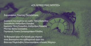 Η Ε.Σ.Ε. προσφέρει δωρεάν σε audio το θεατρικό έργο «ΟΙ ΛΕΥΚΕΣ ΜΑΣ ΝΥΧΤΕΣ» του Κώστα Παπαπέτρου...