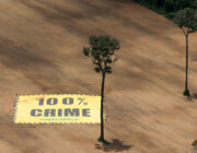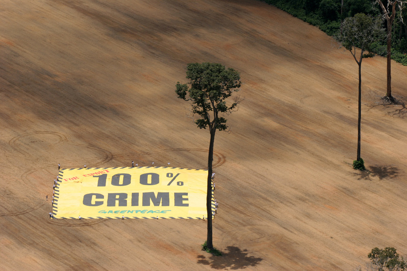- Greenpeace activists occupy an area in 1,645 hectares of the Amazon that has been illegally deforested. A huge 2,500 square meter banner with the message “100% forest crime” is unfurled in the area to draw attention to the issue. The person responsible for the crime, José Donizetti Pires de Oliveira who is President of the Agricultural Producers Association in Santarem and blamed by the Brazilian Environmental Agency IBAMA for this illegal deforestation which is the largest in the Santarem region in the last seven years.