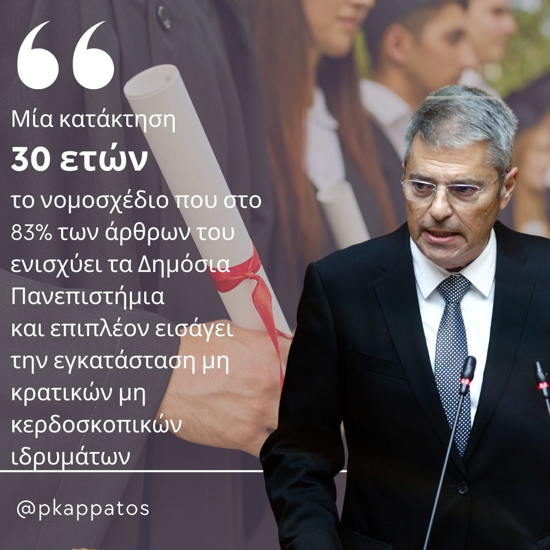 Πρόκειται για μια νομοθετική πρωτοβουλία, η οποία πρωτίστως ενισχύει το δημόσιο πανεπιστήμιο, αλλά ταυτόχρονα διαμορφώνει και το πλαίσιο ώστε να λειτουργήσουν στην Ελλάδα μη κρατικά, μη κερδοσκοπικά ιδρύματα.