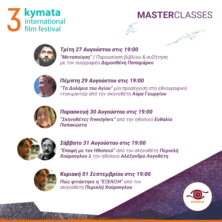 Το 3ο Διεθνές Φεστιβάλ Κινηματογράφου “Κύματα”, θα διεξαχθεί από τις 25 Αυγούστου έως τις 1 Σεπτεμβρίου στο Θαλασσόμυλο στο Αργοστόλι. Μεταξύ των παράλληλων δράσεων θα πραγματοποιηθούν μια βιβλιοπαρουσίαση και τέσσερα εκπαιδευτικά masterclasses κατά τις ημέρες διεξαγωγής του φεστιβάλ. H συμμετοχή είναι δωρεάν. H κράτηση θέσης δεν είναι απαραίτητη. Για τον καλύτερο προγραμματισμό του φεστιβάλ, προαιρετικά μπορείτε να δηλώσετε συμμετοχή στο ακόλουθο link: https://shorturl.at/tea1u