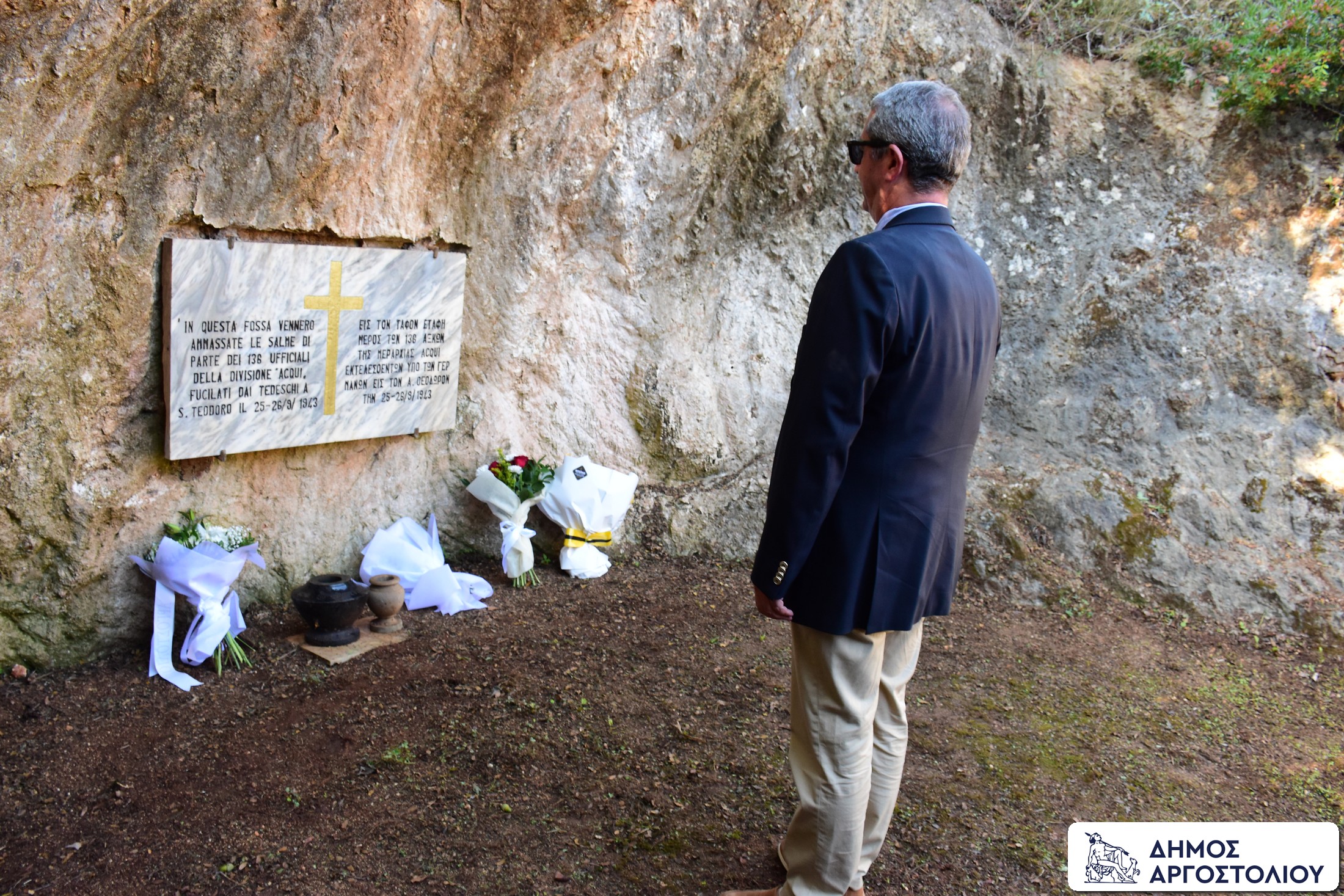 Ο κ. Τσιλιμιδός κατέθεσε στεφάνι, τόσο στο μνημείο της Ελληνικής Εθνικής Αντίστασης στο Αργοστόλι, όσο και στον λόφο που βρίσκεται το μνημείο των Ιταλών Πεσόντων στο Αργοστόλι, καθώς και ένα μπουκέτο λουλούδια, στο ‘’λάκκο των Ιταλών’’, σημείο που δολοφονήθηκαν οι Ιταλοί της Μεραρχίας Ακουι, από τα Γερμανικά στρατεύματα, τον Σεπτέμβριο του 1943.