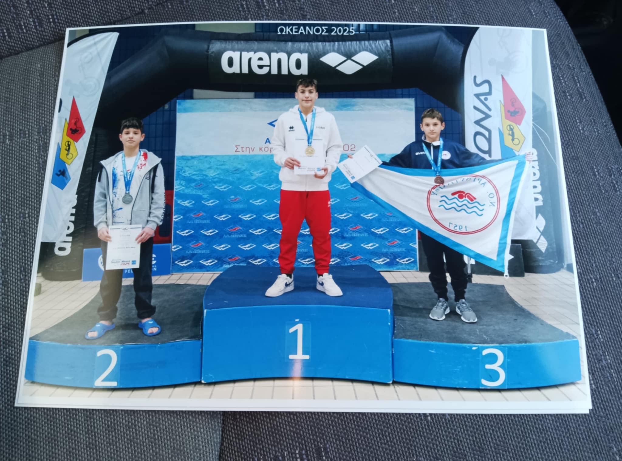 Η αποστολή μας αποτελούμενη από 5 αφοσιωμένους κολυμβητές και κολυμβήτριες με εξαιρετική εμφάνιση και νέα ρεκόρ έδωσαν τον καλύτερο τους εαυτό, κάνοντας περήφανο τον όμιλό μας. Σε έναν πολύ απαιτητικό αγώνα οι κολυμβητές-τριες μας κατάφεραν να φέρουν στο νησί ακόμη μια φορά 2 χρυσά, 1 ασημένιο και ένα χάλκινο μετάλλιο.