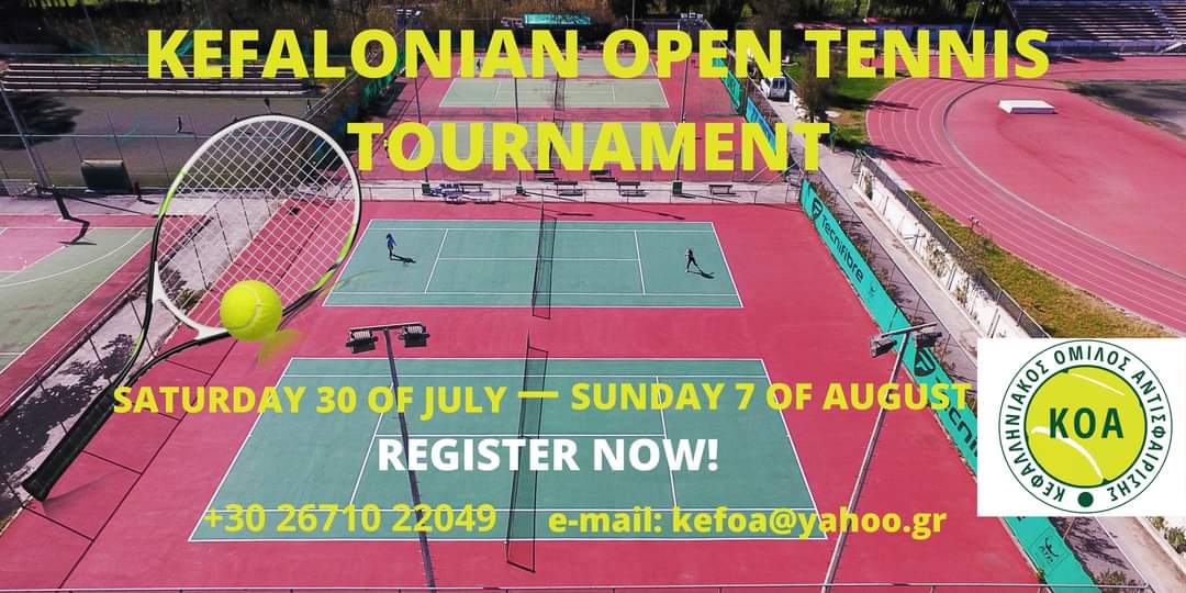 The Kefalonia tennis club announces an open tournament that will take place from Saturday 30/7/2022 to Sunday 7/8/2022. The matches will be held at the facilities of the Kefalonia Tennis Club (Antonis Tritsis – Argostoli) and will include the following categories: