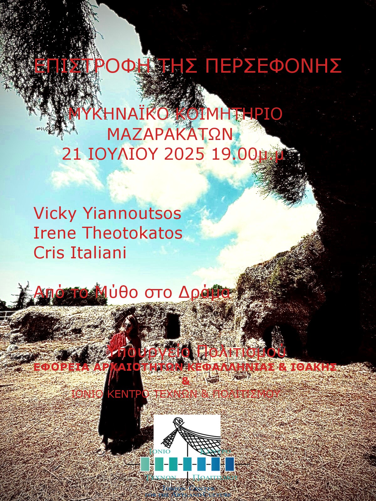 Mε την αιγίδα του Υπουργείου Πολιτισμού, συνδιοργάνωση Εφορείας Αρχαιοτήτων Κεφαλληνίας -Ιθάκης & Ιονίου Κέντρου Τεχνών & Πολιτισμού