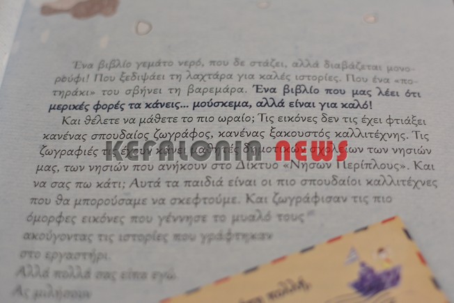 Όλα τα παιδιά φεύγοντας προμηθεύτηκαν και από ένα παιδικό βιβλίο, η έκδοση του οποίου συγχρηματοδοτήθηκε από το Ευρωπαϊκό Γεωργικό Ταμείο Αγροτικής Ανάπτυξης και το Υπουργείο Αγροτκής ανάπτυξης και τροφίμων. Εκδόθηκε και κυκλοφορεί δωρεάν στα Δημοτικά Σχολεία από το “Νήσων Περίπλους” Δίκτυο Αναπτυξιακών Εταιριών Νησιωτικης Ελλάδας και την ΣΑΖ Αναπτυξιακή ΑΕ.