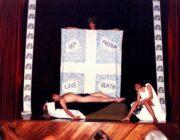 Το 1988 την εποχή της ακμής των εικαστικών performance-Ζωντανά εικαστικά έργα στον χώρο- μου ανατέθηκε από την Ελληνική Εταιρεία Βύρωνος, που πρόεδρος της ήταν ο Μάριος- Βύρων Ραίζης, καθηγητής αγγλικής λογοτεχνίας στη Φιλοσοφική Σχολή του Πανεπιστημίου Αθηνών, να δημιουργήσω ένα εικαστικό έργο για την πρώτη εκδήλωση της νεοσύστατης Εταιρείας, με αφορμή τα 200 χρόνια από την γέννηση του Byron,στο British Council στην Αθήνα. Έδρασα κυριολεκτικά με «Βυρωνική» έμπνευση και τόλμη για τα δεδομένα διάθεση, ενώ απαιτήθηκαν πολλές διαβουλεύσεις με τους διπλωματικούς υπεύθυνους για να κατανοηθεί και να υλοποιηθεί η εικαστική μου πρόταση. Διαμόρφωσα μια σύνθεση με συμβολική και εννοιακή αναφορά στη σκηνή ενός ποιητικού θανάτου, με κύριο άξονα το γυμνό σώμα του νέου ποιητή, που παρέστησε ο χορευτής και τότε ηθοποιός του Εθνικού Θεάτρου Τάκης Λουκάτος, από το οποίο ξετυλιγόταν ένα μακρύ ρολό τηλετύπου με χειρόγραφο το περίφημο τελευταίο ποίημα του Βύρωνα «Σήμερα που έκλεισα 36 μου χρόνια/ On this Day i complete my Thirty Sixth Year». Στο πλάι του γυμνού σώματος μια όμορφη νεαρή Αθηναία, κόρη-δόξα θλιμμένη, ενώ έστεκα υπερυψωμένος στο κέντρο της σύνθεσης κρατώντας ένα λάβαρο-σημαία , με συμβολικά βέλη και την αναγραφή των λέξεων: IDEA-FREEDOM-LOVE-DEATH. Η θέαση του έργου μου με την παράλληλη μουσική ερμηνεία ποιημάτων του Byron, μελοποιημένων για φωνές και ορχήστρα από τον συνθέτη Ίωνα Ζώτο, ομ. καθηγητή της Μουσικολογίας του Πανεπιστημίου Αθηνών, στο υπερώο του αμφιθεάτρου του Βρετανικού Συμβουλίου προκάλεσε έντονες εντυπώσεις. Αυτή λοιπόν την ιδιότυπη βυρωνική σημαία που κρατούσα στο ζωντανό έργο μου, την ενέταξα έκτοτε σε ανάλογες performance και έργα πολυμέσων για τον μεγάλο ποιητή, που παρουσίασα σε επετείους για την ζωή και την αγωνιστική προσφορά του. Τελικά μετά από χρόνια παρουσιάστηκε στην έκθεση με ένθετη στο κέντρο της την μορφή του Λόρδου Βύρωνα στο εικαστικό περιβάλλον που συνέθεσα. Συναισθηματική, αισθητική και τιμητική κατάθεση στην αλήστου μνήμης ιδεατή και εμψυχωτική αφοσίωση και αυτοδιάθεση του ποιητή στο όραμα της νέας Ελλάδας και στην απαρχή μιας νέας και φιλελεύθερης εποχής.